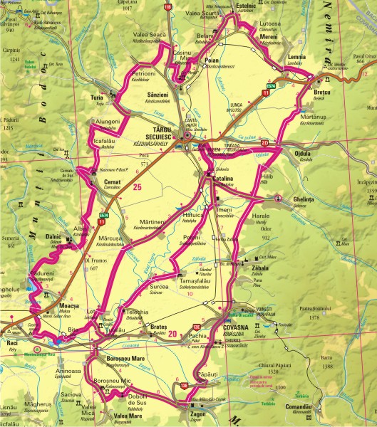 | helye | Kézdi körút: Kézdivásárhely (Târgu Secuiesc) – Ozsdola (Ojdula) – Bereck (Breţcu) – Lemhény (Lemnia) – Kézdialmás (Mereni) – Kézdiszentkereszt (Poian) – Kézdiszentlélek (Sânzieni) – Torja (Turia) – Csernáton (Cernat) – Kézdialbis (Albiş) – Dálnok (Dalnic) – Maksa (Moacşa) – Réty (Reci) – Lécfalva (Leţ) – Kézdimárkos (Mărcuşa) – Szentkatolna (Cătălina) – Kézdivásárhely (Târgu Secuiesc) Orbai körút: Kovászna (Covasna) – Csomakőrös (Chiuruş) – Zágon (Zagon) – Nagyborosnyó (Boroşneu Mare) – Cófalva (Țufalău) – Székelytamás (Tamaşfalău) – Imecsfalva (Imeni) – Szentkatolna (Cătălina) – Gelence (Ghelinţa) – Zabola (Zăbala) – Kovászna (Covasna) |